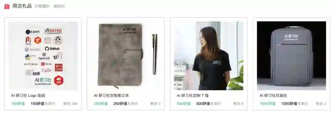 只要参与投票的社区伙伴们,完成当日投票后,均可获得该票对应的10研值奖励。我们的投票活动将会持续到总票数达到100000票时关闭通道,在此期间,如果你能每天动动小手指,投上一票,你就有机会累积获得很多研值。凭研值可在AI研习社社区的“福利”板块换取对应的礼物: