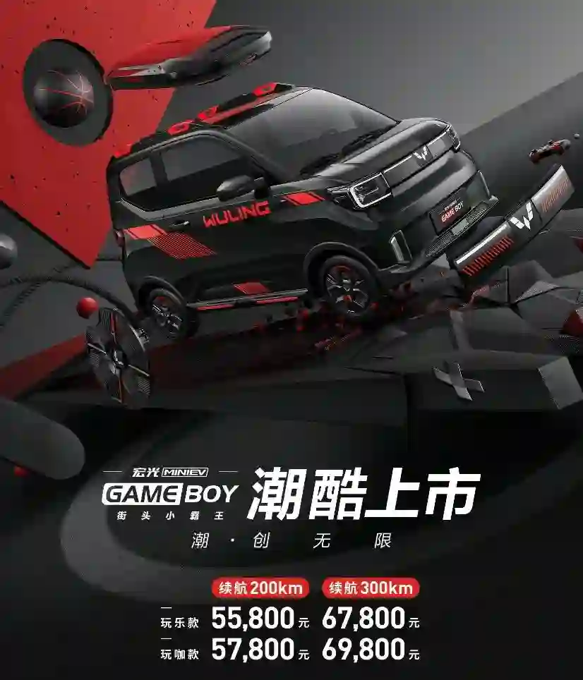 【宏光MINIEV GAMEBOY上市起售价超5万元】五菱宏光MINIEV GAMEBOY车型正式上市,共推出了4款车型,售价区间为5.58万-6.98万元。续航里程分为200km和300km两个版本。每款车型还提供磷酸铁锂和三元锂两种电池选择。(蓝鲸财经)