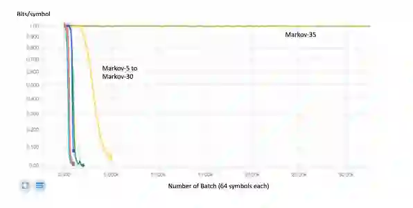 在这一研究的论文中,研究人员首先分析和理解了已知熵情况下,合成数据集上 RNN 和算术编码方法的表现,其目的是对各种 RNN 结构的能力和极限进行直观的理解。研究人员也对伪随机数生成序列(PRNG)进行了测试,尽管其熵率为零(因为它们是确定性的),但使用标准技术极难压缩。基于对此前在合成数据集上测试的经验,研究人员使用了文本压缩模型和基因组数据集。