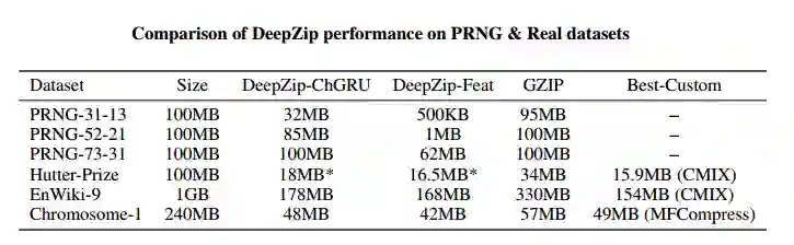 图 8:包含 128 个单元的 DeepZip 模型在实际数据集上的表现