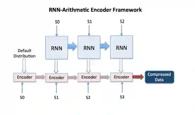 算术编码器和 RNN 评估器模块都通过迭代传递状态信息。算术编码器的最终状态充当压缩数据。