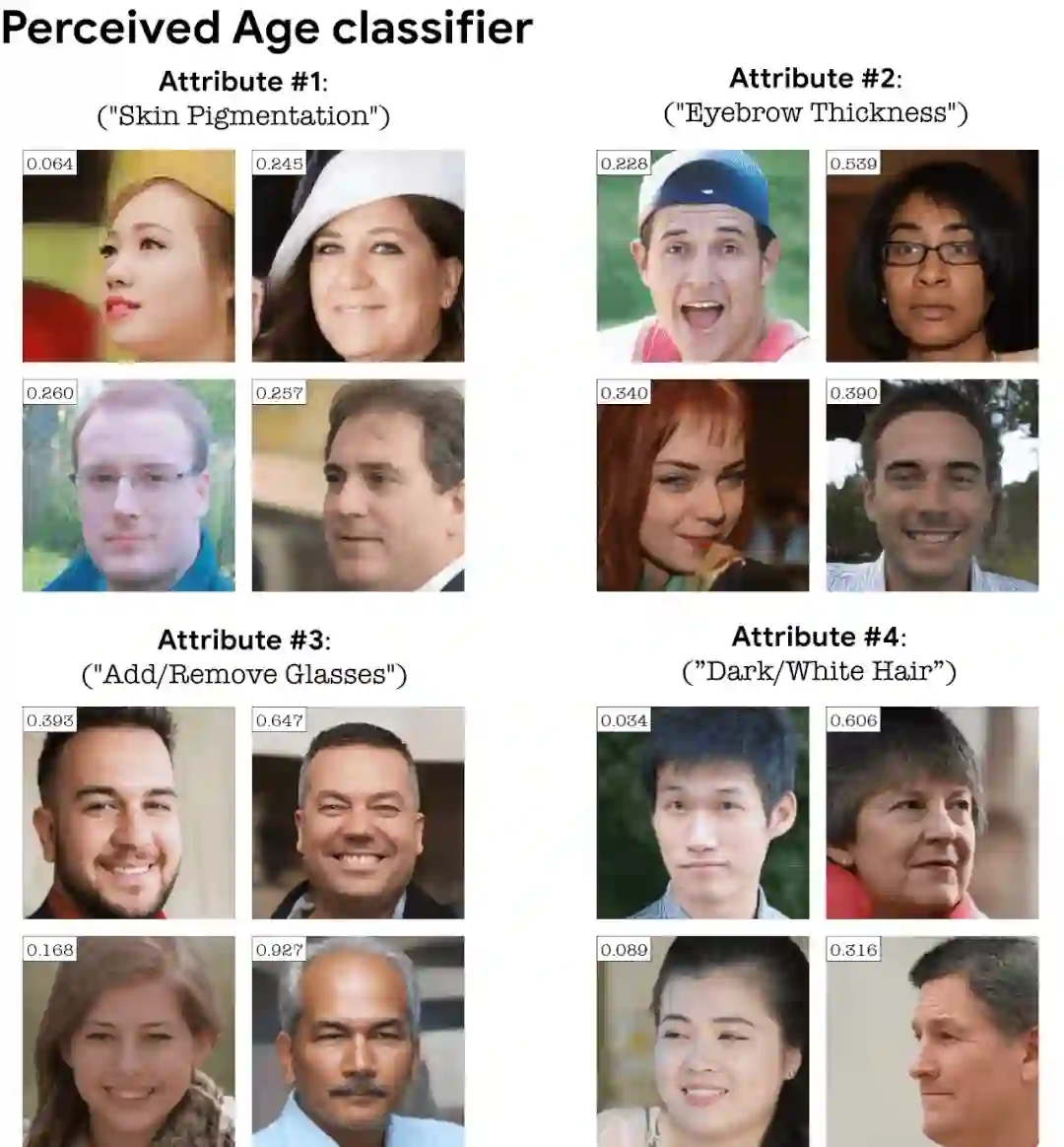 StylEx 揭示了给定分类器可以从数据中学会利用图像不同属性,这些属性可能不一定代表现实中类别标签(例如年轻或年长)之间的实际物理差异。特别是,这些检测到的属性可能会揭示分类器训练或数据集中的偏差。StylEx 可以进一步用于提高神经网络的公平性,例如,通过增加训练数据集的示例来补偿 StylEx 方法揭示的偏差,有针对性的进行补偿。