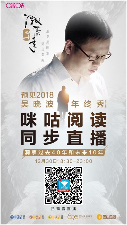 届时,与吴晓波频道达成深度合作的咪咕阅读、咪咕直播、咪咕视频将全程直播这一盛事。