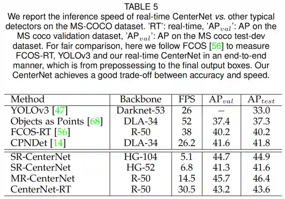作者还提出了一个实时CenterNet,它在流行的检测器中实现了更好的精度/速度权衡。