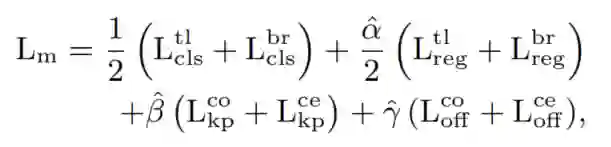 和 为l1-loss,分别用于训练网络预测角点和中心关键点的偏移量。