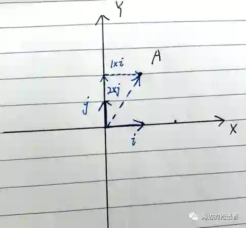 我先说答案,再说为什么是这个答案~。答案就是通过坐标系的基向量来表示数据(向量)。如图所示,我们取i和j作为基向量(在这里i的坐标为(1,0), j的坐标为(0, 1)),那么数据A(1, 2),就可以表示为(1*i, 2*j)。于是我们把这个问题拓展开来,二维上的数据点可以通过(基向量i*数据点在基向量i上的投影长度,基向量j*数据点在基向量j上的投影长度)表示,那么三维上的数据点也可以用这样的方式,于是乎n(n>=2)维上的点可以表示为:(基向量i*数据点在基向量i上的投影长度,基向量j*数据点在基向量j上的投影长度,…,基向量n * 数据点在基向量n上的投影长度),于是乎我们这个子问题就解决了,即找到了一种在不同维度坐标系下表示数据的方法。
