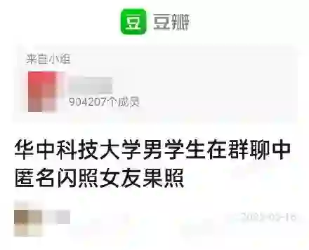 此前,豆瓣有贴称有985高校男生在群聊中匿名闪照女友“果照”,此事引起广泛热议。