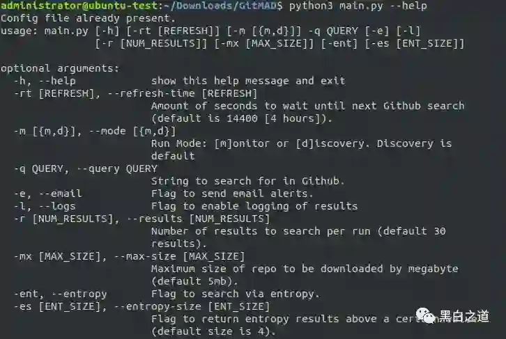 python3 /<path-to-gitmad>/GitMAD/main.py -q <keyword-to-search> [see other options below]