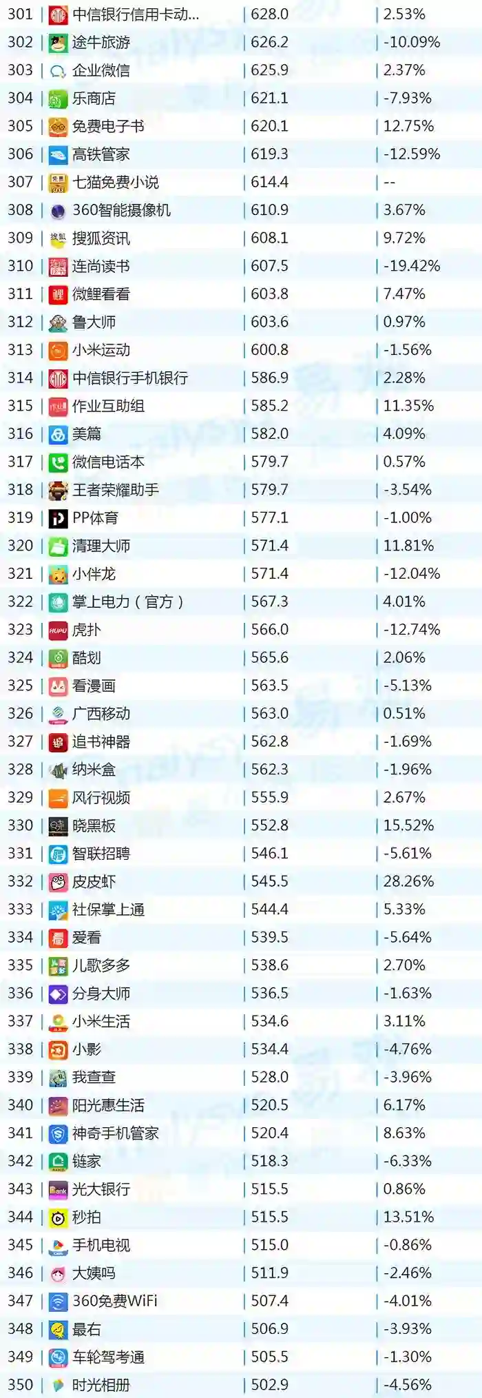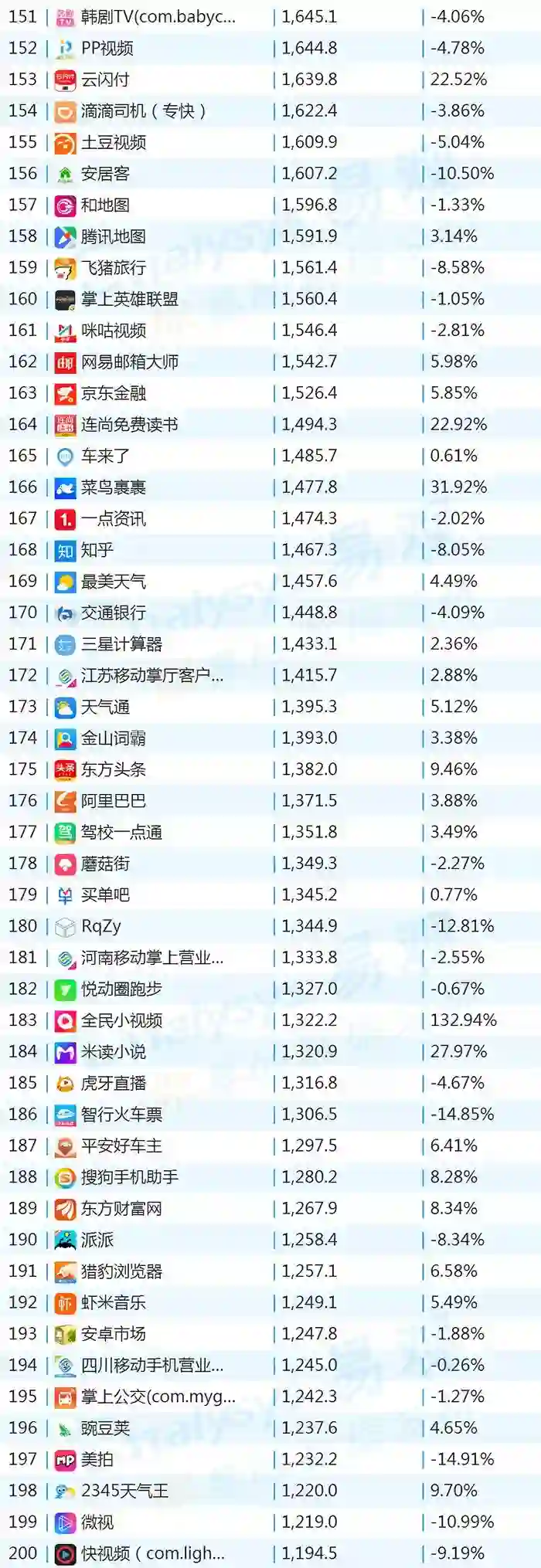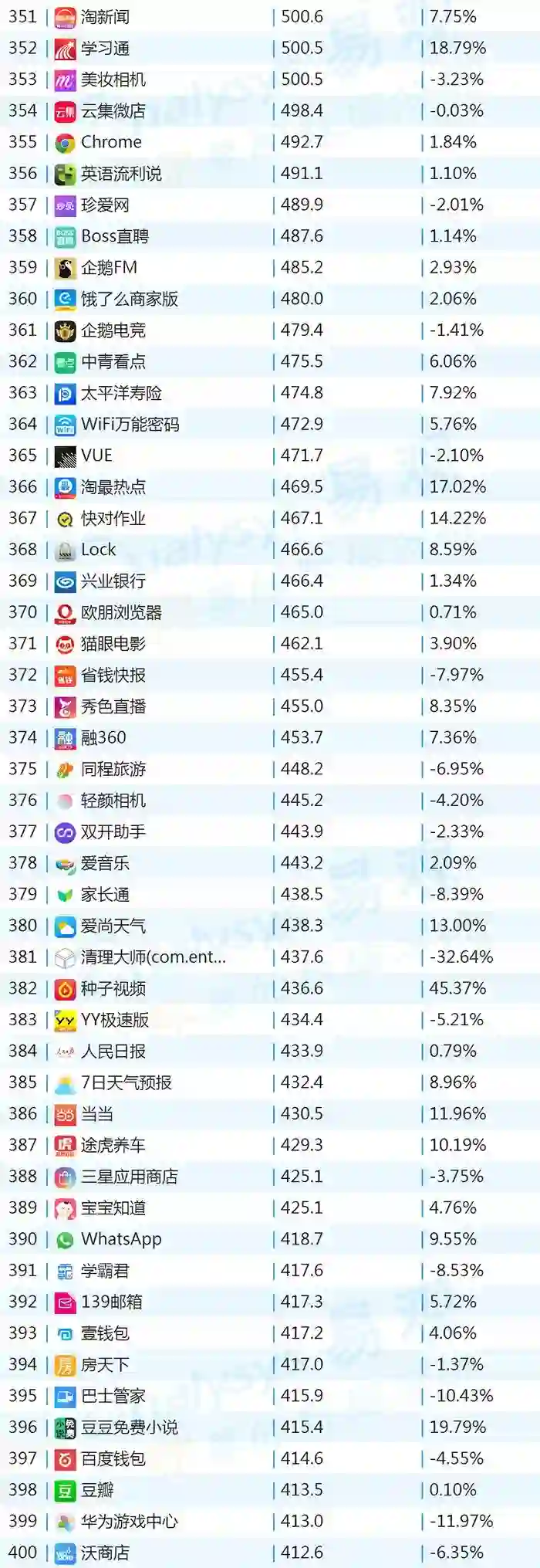 双11的“发起人”阿里,其旗下产品可谓在该月赚足了风头,尤其是淘宝可以说是当之无愧的最大赢家。其在TOP1000榜单排名中,淘宝由10月的第四名一跃成为榜单第二名,月活规模超过了QQ和爱奇艺,表现亮眼。