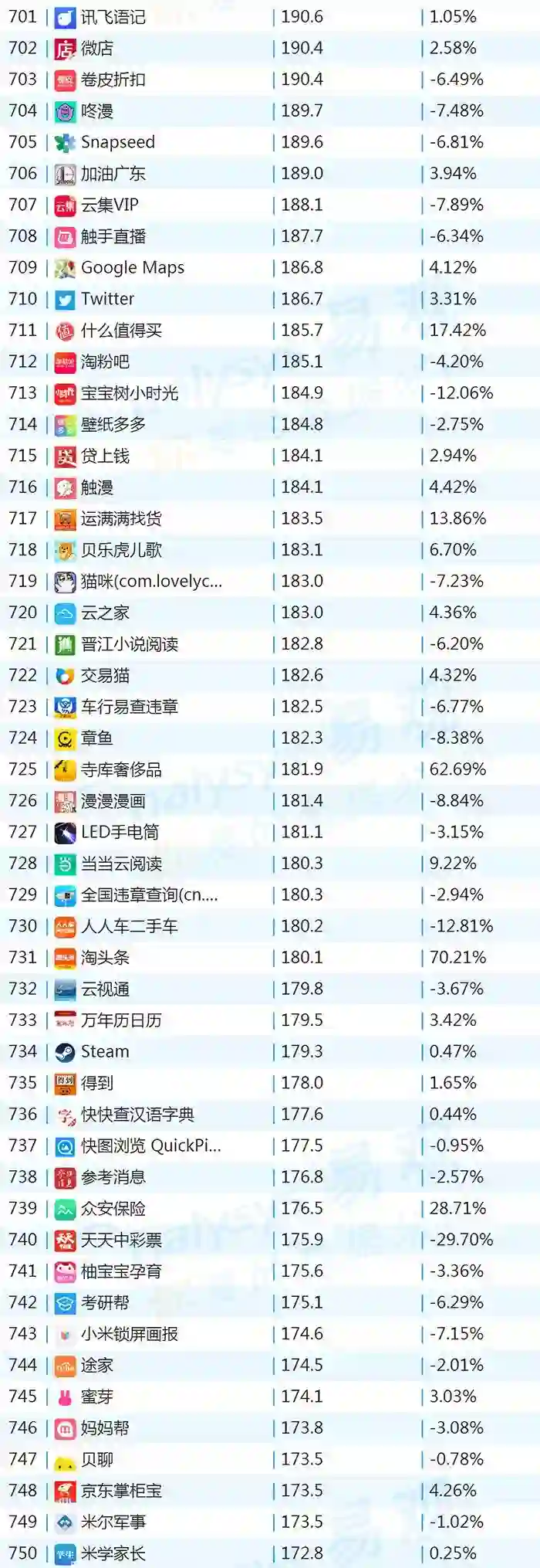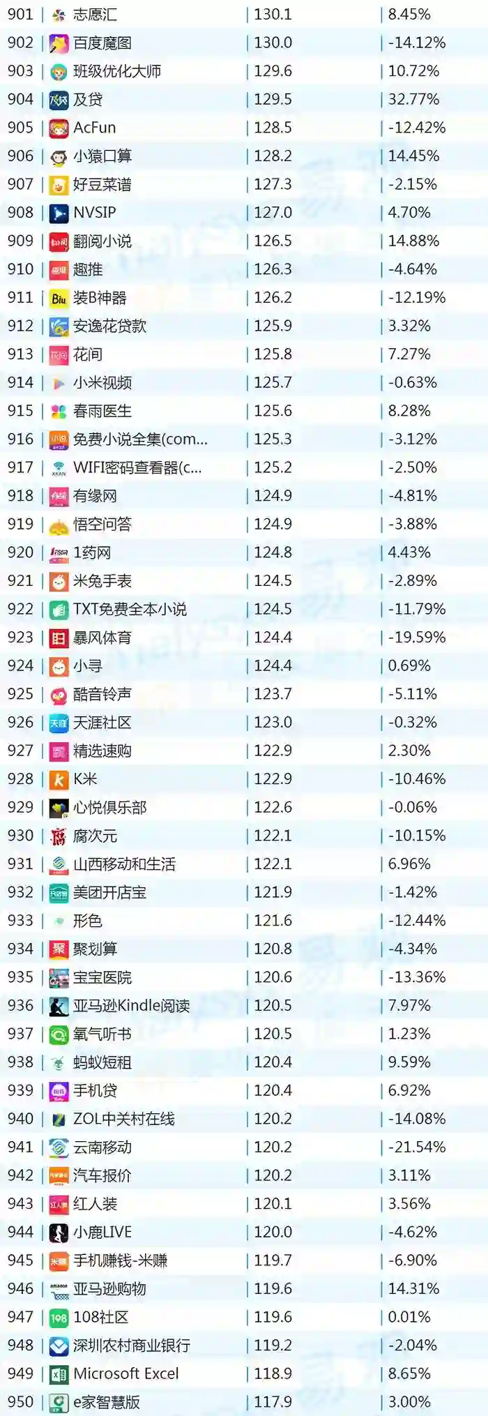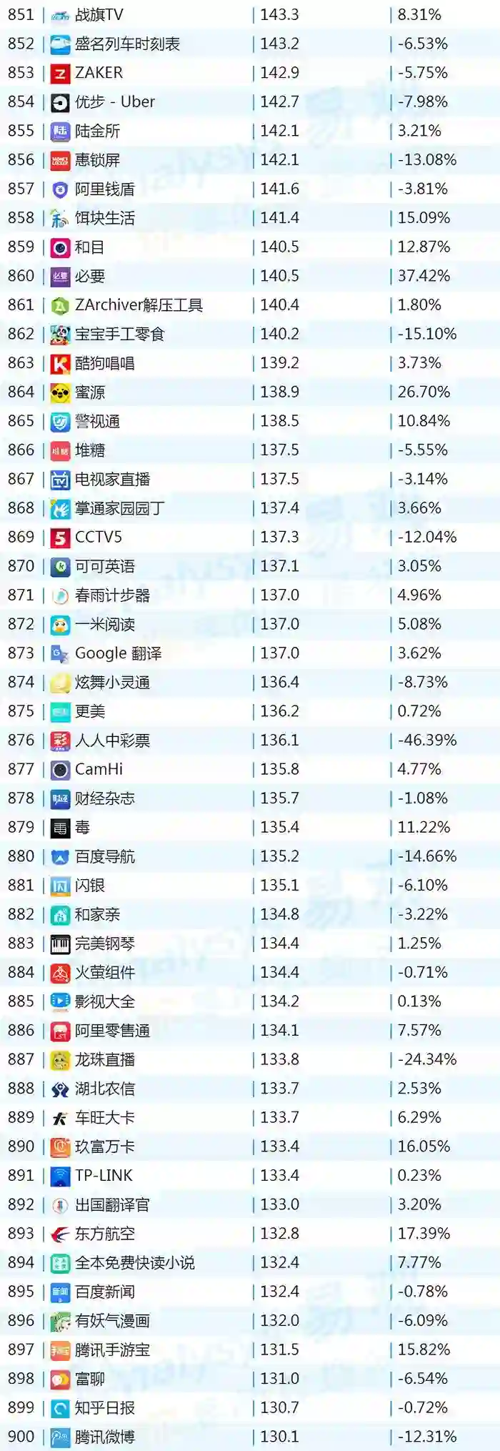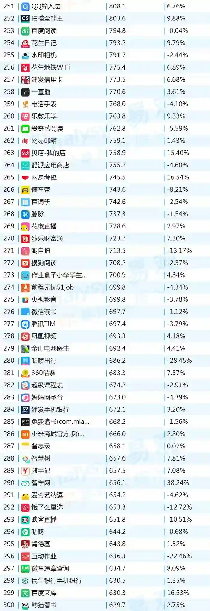 双11的“发起人”阿里,其旗下产品可谓在该月赚足了风头,尤其是淘宝可以说是当之无愧的最大赢家。其在TOP1000榜单排名中,淘宝由10月的第四名一跃成为榜单第二名,月活规模超过了QQ和爱奇艺,表现亮眼。