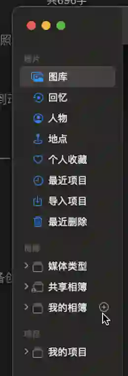 在左侧分栏的「相簿」中点击加号