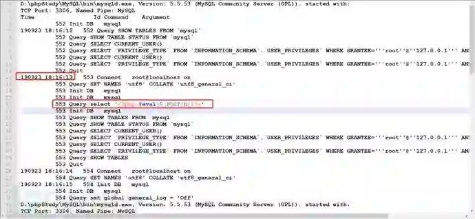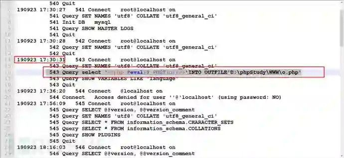 (7)还有其他的黑客是通过phpmyadmin登录弱口令密码的系统日志文件写入webshell进来的