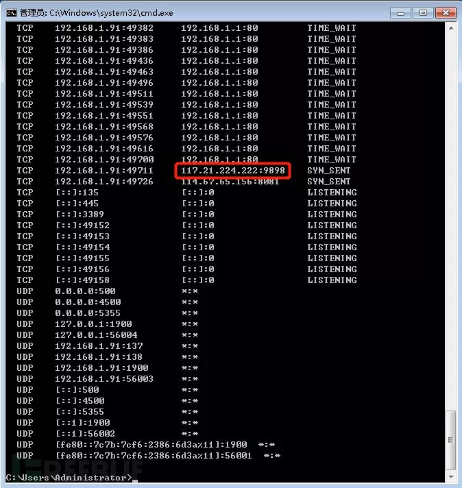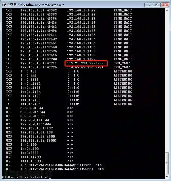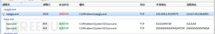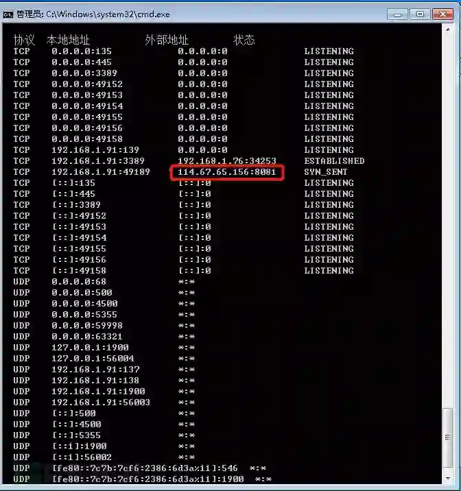 (2)执行cd.exe程序后本地端口49189端口被占用,链接的外部C&C的上线地址:114.67.65.156:8081