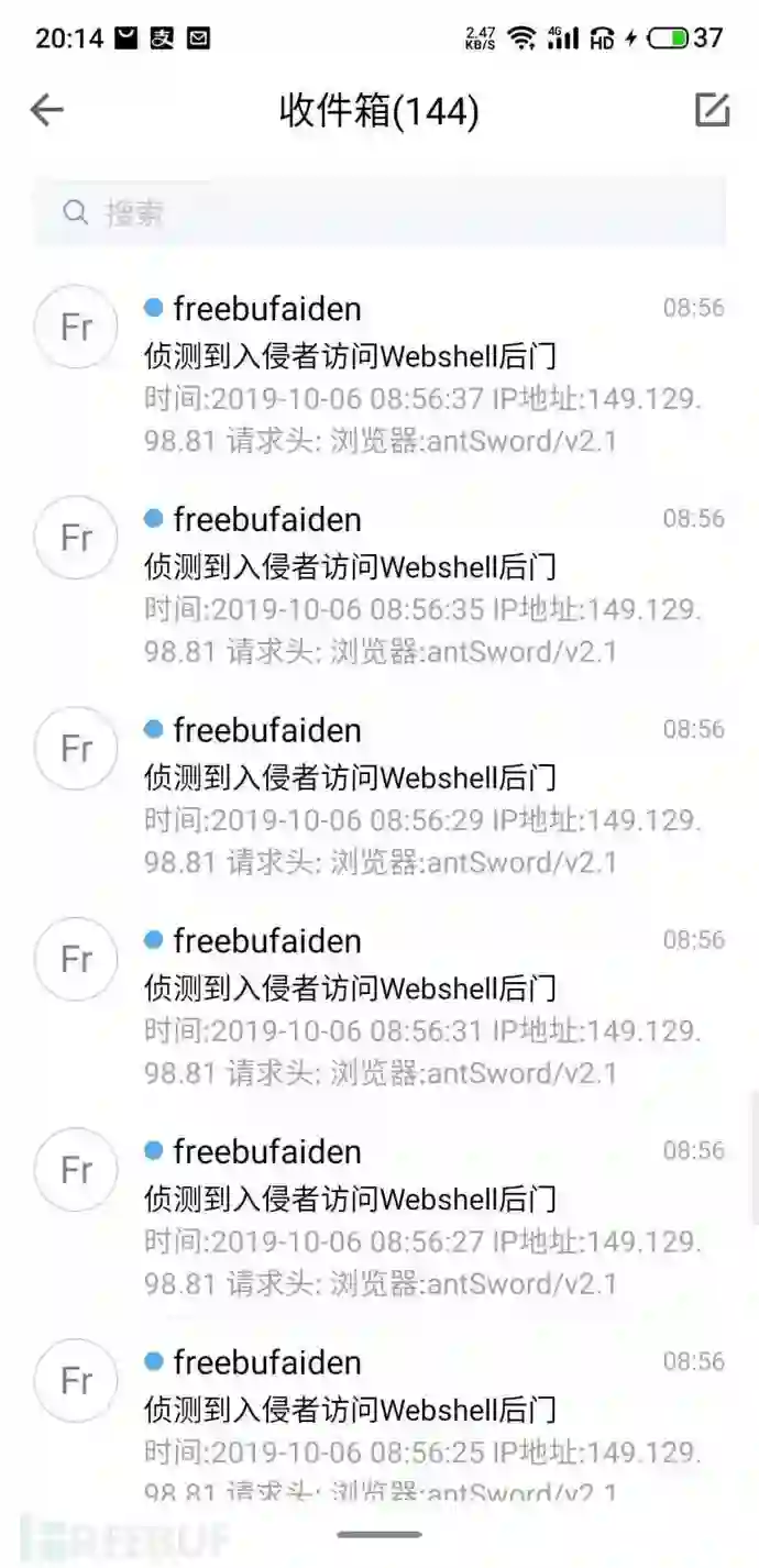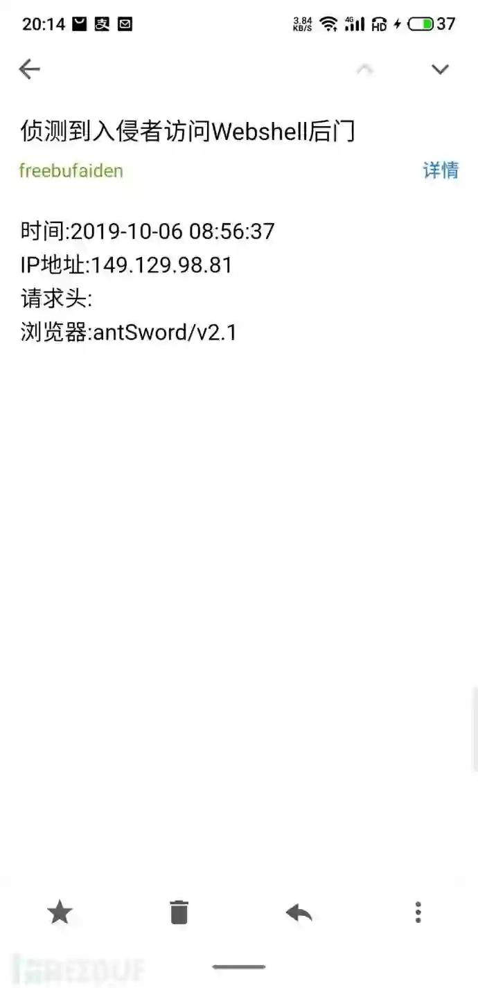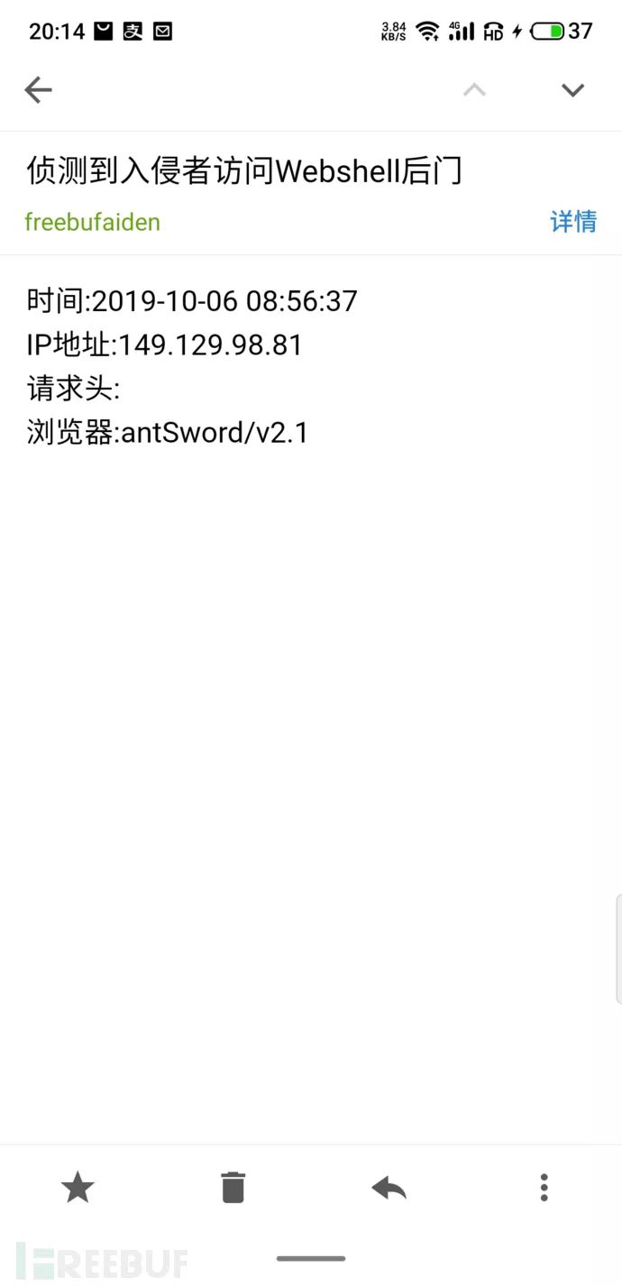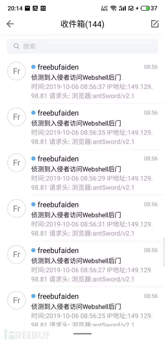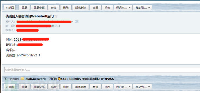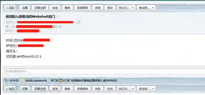 (10)在经过十多个小时的等待,我终于等待到了那些大黑客重新访问他们预留下来的Webshell地址了,手机QQ邮箱也收到了邮件通知