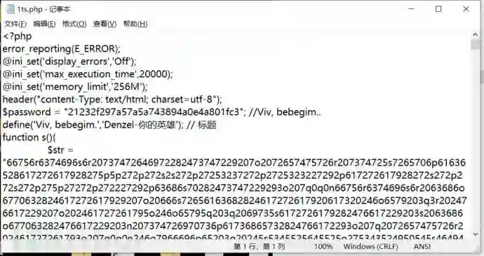 (2)但是在检测之前我需要对他们的webshell一句话木马做一下加工处理,黑客原先留下的webshell代码如下: