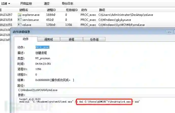C:\Windows\system32\cmd.exe” /c del C:\Users\ADMINI~1\Desktop\cd.exe > null