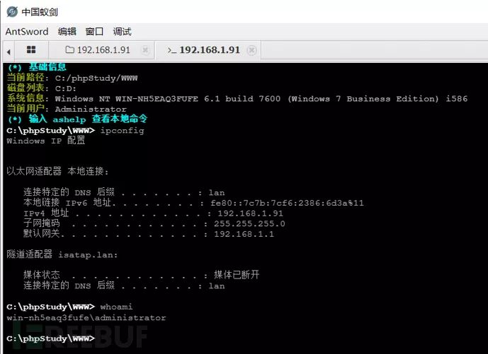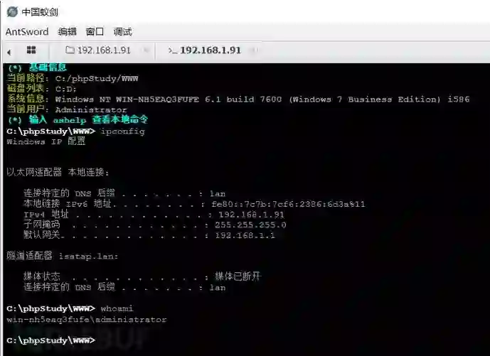 (2)我们可以看到上面的这个Python复现phpstudy远程RCE的脚本针对于单一命令的phpstudy部署的站点例如这种界面额的还比较方便,如果我们不知道绝对路径是不是就不能写入webshell了?其实这并不会!