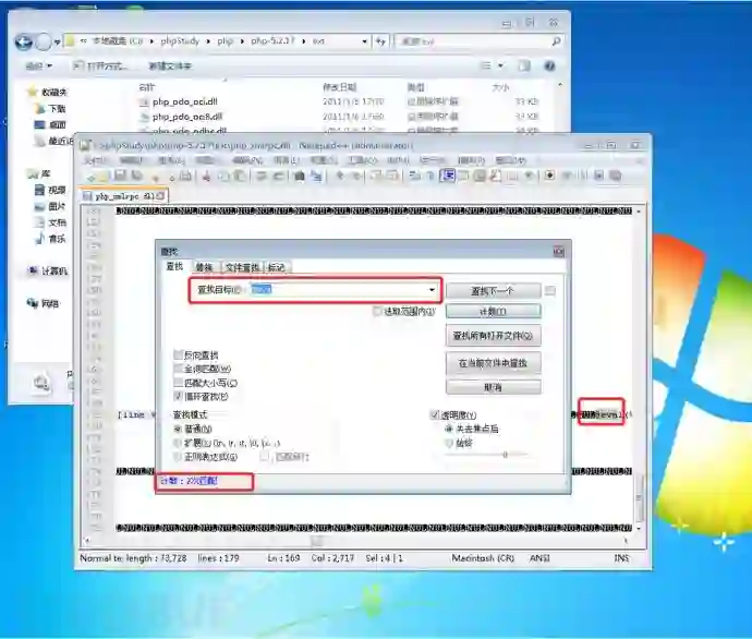 (3)找到“ php_xmlrpc,dll”后用记事本打开,“ Ctrl + F”搜索“ @eva ”字符串如果存在就存在后门: