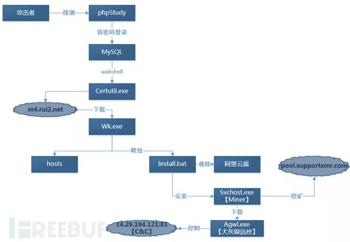 病毒团伙利用phpStudy RCE漏洞批量抓鸡,下发四个远控木马