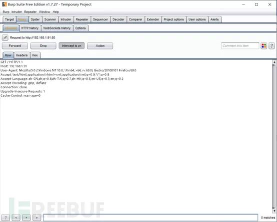 (3)浏览器设置本地代理并且打开BurpSuiteFree抓包