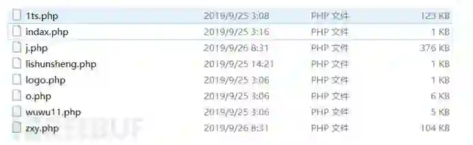 (2)部分检测到存在漏洞phpstudy服务器主机网站根目录下高频出现的php一句话木马文件名如下: