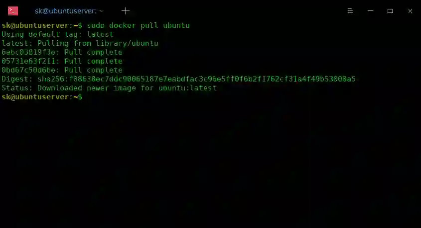 这条命令将会从 Docker hub 下载最近一个版本的 Ubuntu 镜像文件。
