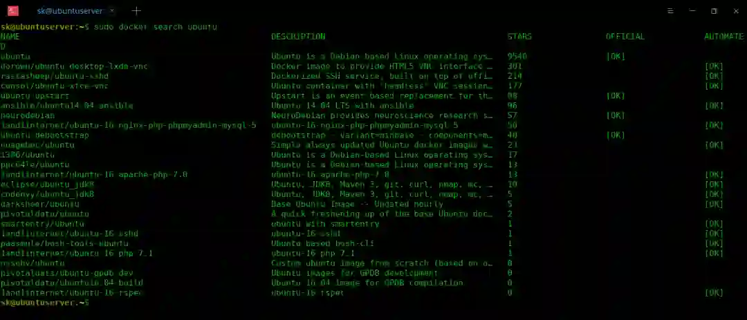 例如,搜索一个基于 Ubuntu 的镜像文件,只需要运行: