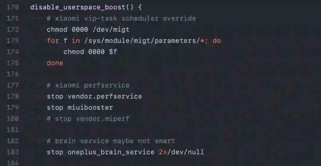 一台手机上的性能调度是典型的「一山不容二虎」,因此 Uperf 会禁用手机厂商设置在系统中的性能调度服务或是温度控制服务。