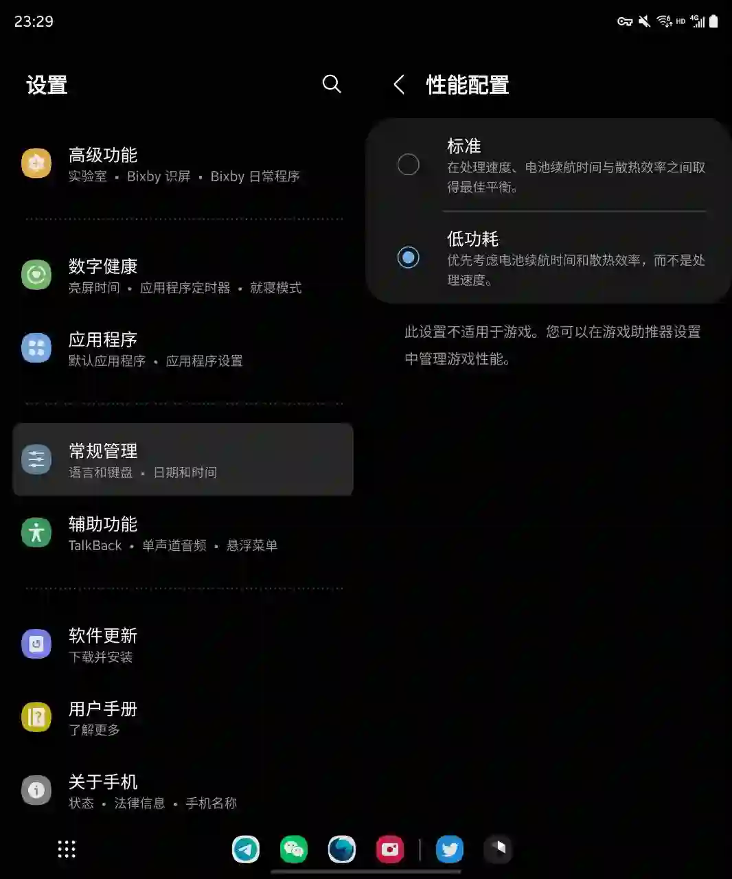 在全球变暖的趋势下,用户也希望手里的设备能凉快一些,让设备性能可调可控的需求自然也逐渐凸显。所以在 Uperf 受到玩机社区青睐的同时,手机厂商也在跟进类似的需求。比如 One UI 最近也在新机中就设立了只对芯片生效的「低功耗」档性能模式,通过降低 CPU 最高频率并采用更保守的性能释放策略,来实现省电降温的目的。