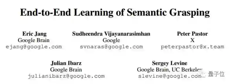近日,谷歌团队在arXiv上发布了新论文《End-to-End Learning of Semantic Grasping》,这篇文章由谷歌成员Eric Jang、Sudheendra Vijayanarasimhan、Julian Ibarz、Sergey Levine和Peter Pastor五人共同完成。
