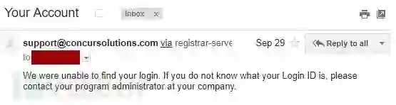 09/29/2017: 通过我的邮箱进行首次Concur登录密码重置请求