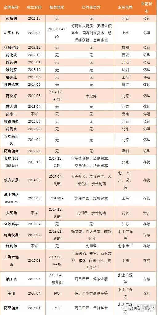 美团点评、饿了么、阿里健康、京东到家、平安好医生等平台或者自身为“独角兽”,或者是大平台在医药领域的细分业务,自然更加不缺资源。