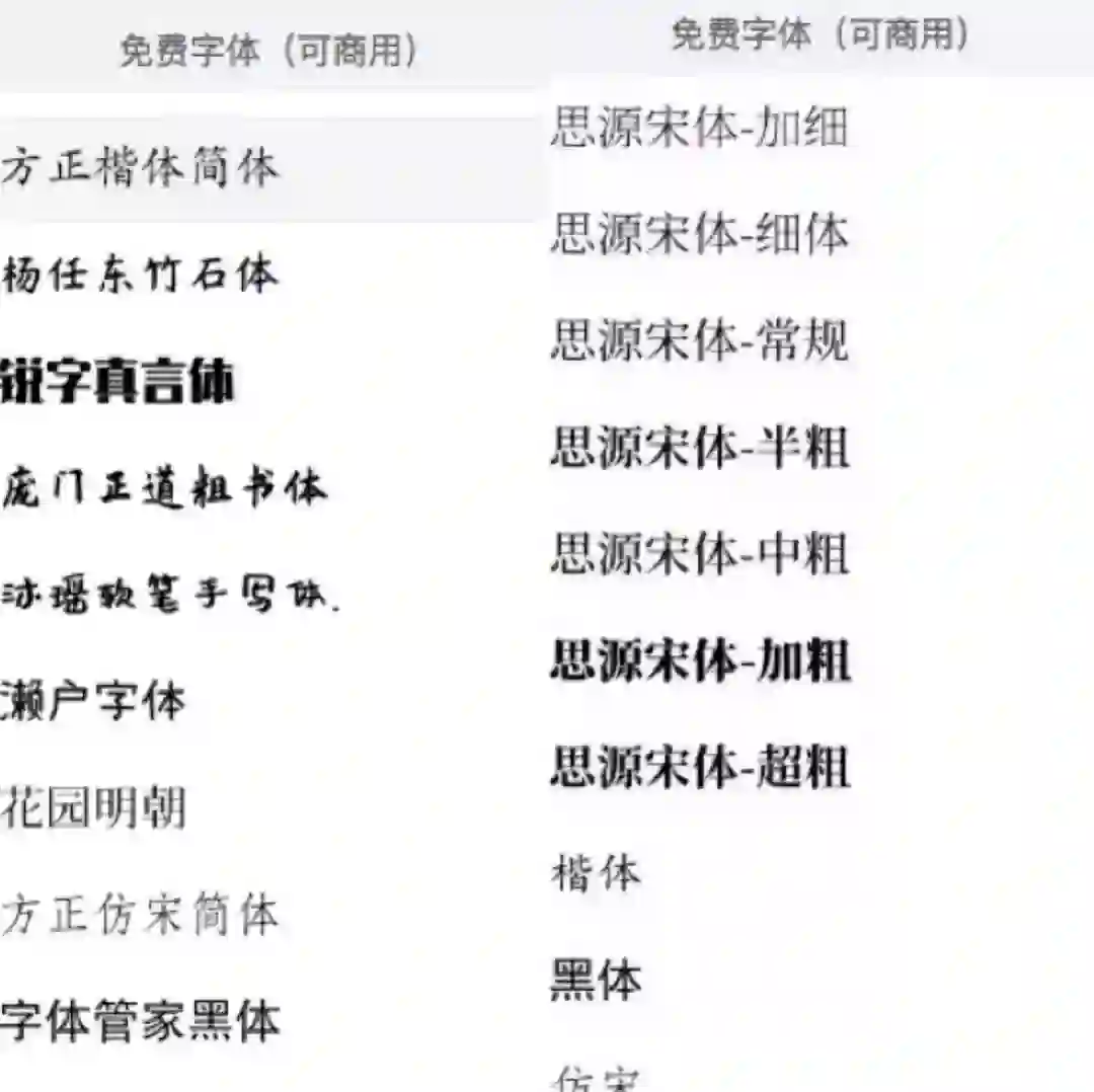 虽然有些小伙伴是怕了方正...但它还是有四款可以免费商用的字体:方正黑体、方正书宋、方正仿宋、方正楷体
