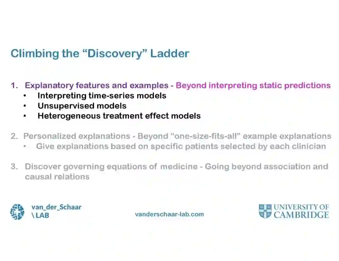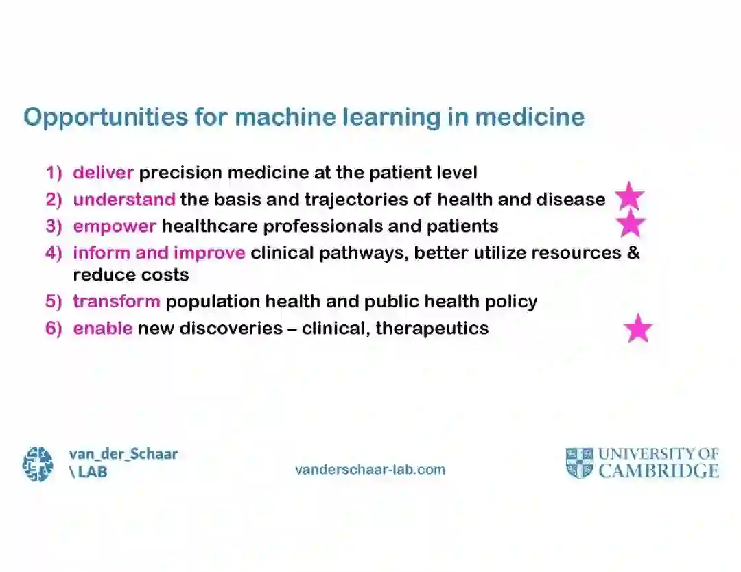 本教程将介绍大规模构建临床决策支持系统、预测疾病轨迹、估计个性化治疗效果、个性化主动监测和筛查以及跨临床环境转移知识的新方法。它还将讨论如何使ML可解释、可解释和值得信任,以便临床医生、患者和政策制定者可以使用它获得可操作的情报。最后,将讨论如何集成所有这些技术来构建医疗保健学习机器,将仅捕获数据的电子健康记录转化为个性化决策支持、合作、有效的健康管理和发现的引擎。