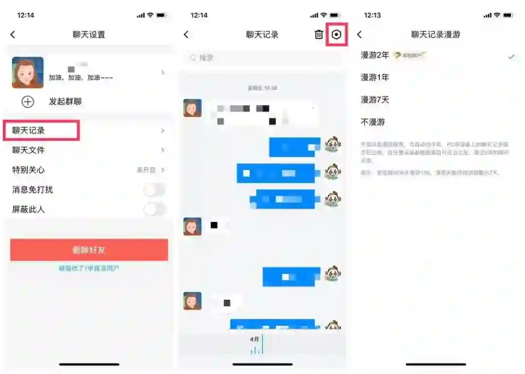 不过有一点各位可以放宽心,虽说现在在主界面完全找不到 TIM 高级账户的入口,但你点击进入任意聊天界面,点击右上角进入聊天记录设置后查询高级账户状态,高级账户依旧支持漫游 2 年的聊天记录。