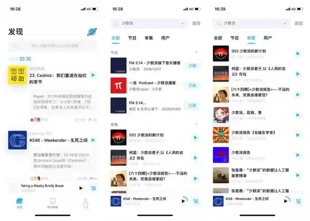 小宇宙的一大优势,是其强大的中文搜索功能。近年来,随着喜马拉雅等播客平台的崛起,中文播客数量也飞速增长,曾经单一的订阅源搜索显然不足以满足需求。小宇宙支持搜索订阅节目、单集标题以及相关用户,搜索也采用了实用性更强的近似匹配,你即便只记得零星的字词,也可以搜索到一档具体的栏目,无需订阅直接播放即可。
