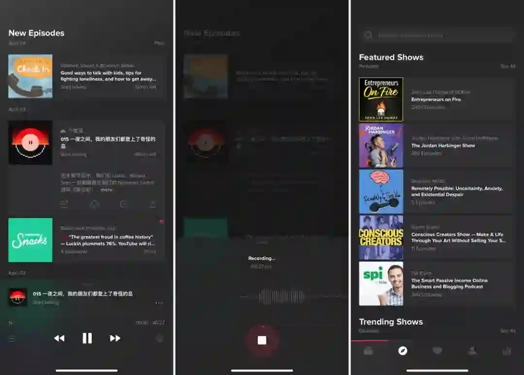 除了搜索外,小宇宙也是少数在发现页推荐全中文内容的播客应用,如果你刚开始使用播客,还不知道该听些什么,可以在这里转一转,看看能否找到一些感兴趣的节目。
