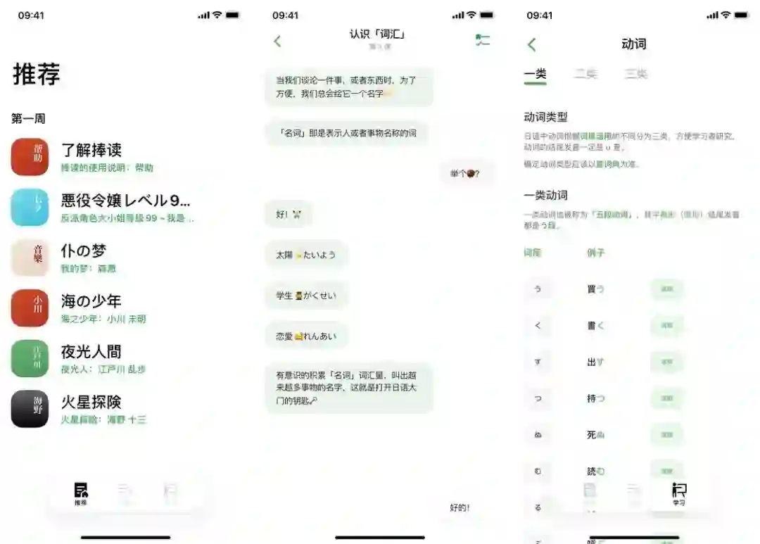 捧读采用互动式的学习方法,你可以通过类似聊天的方式来学习。应用目前拥有从日语的渊源到如何解析句子结构等内容,后续还会更新日语初级语法和课后练习题。互动式的学习方法削弱了传统教材「一板一眼」的感觉,让人更有兴趣学习,学起来也更加轻松。