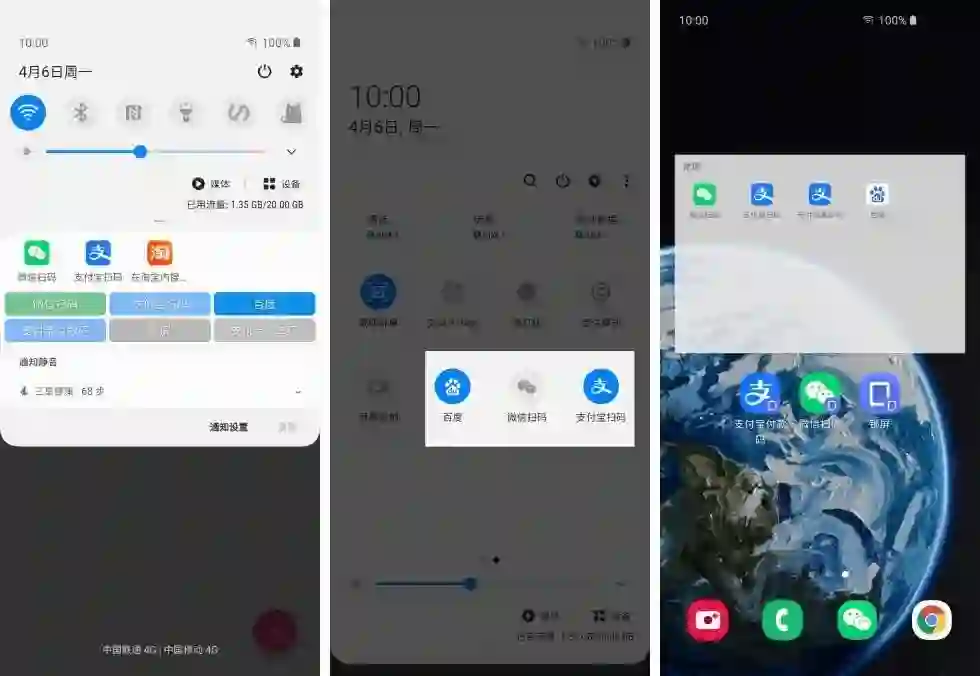 通知栏:快径允许用户创建多个图标或颜色(更确切地说是文字)样式的通知栏,每个图标样式通知栏最多添加 5 个快捷方式,颜色样式通知栏最多添加 3*4 共 12 个快捷方式,每个通知栏列表所含快捷方式相互独立;通知栏使用 Android 标准通知接口,并且支持暗黑模式覆盖;