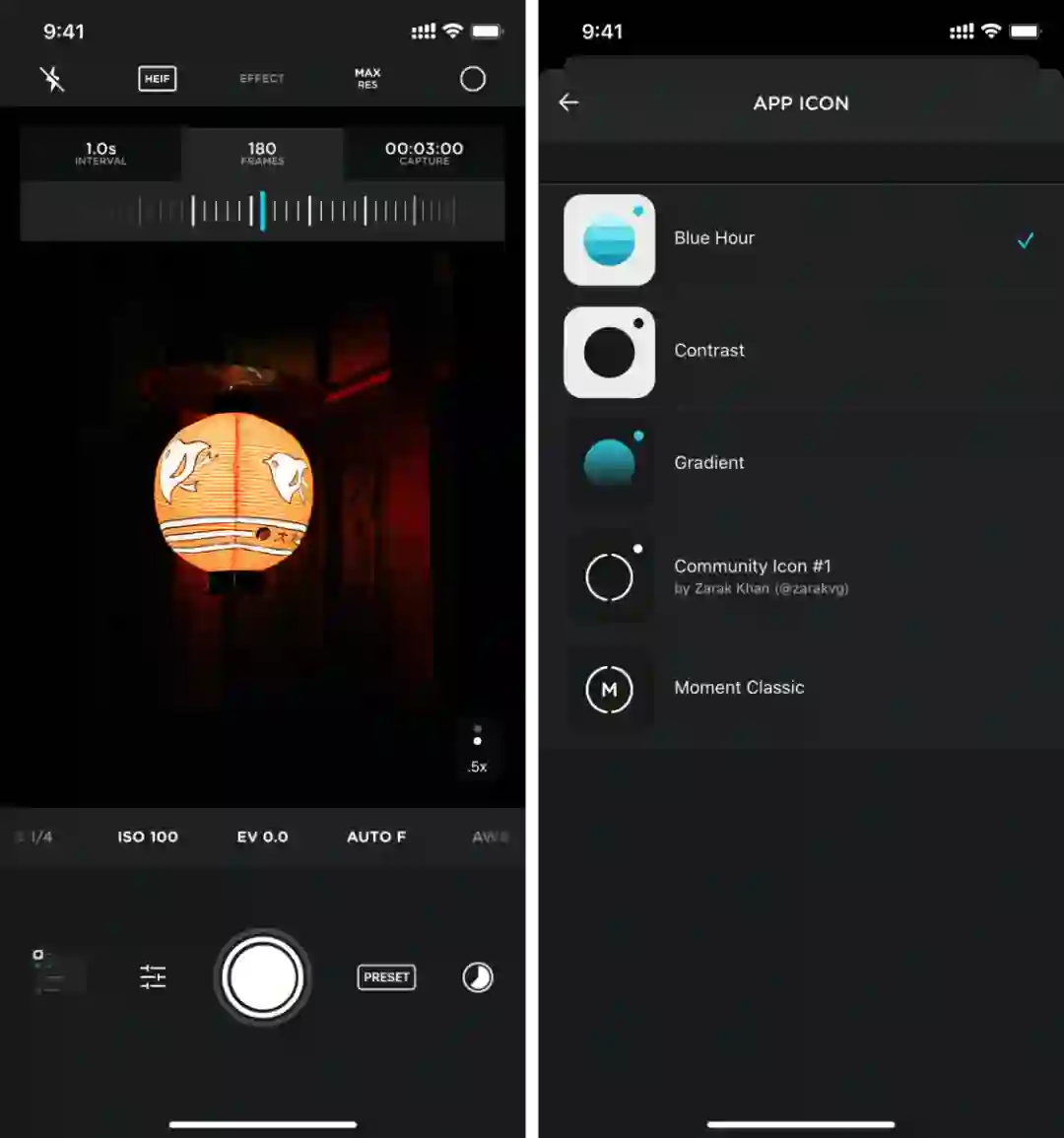huhuhang:Moment 是西雅图一家主营手机外置镜头的厂商,Pro Camera (之前名为 Moment)则是其开发的一款手动相机应用。上周,Pro Camera 发布 4.0 大版本更新,带来了更加清新简洁的应用图标。我个人比较喜欢新图标,你也可以通过应用设置选择包含经典 LOGO 的其余 4 种图标样式。