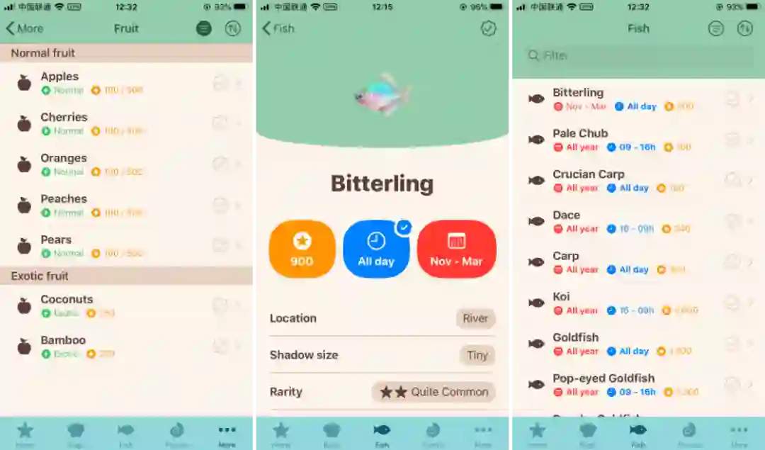 ACHN Travel Guide 这款《动森》攻略应用可以说是集合了目前我们希望速查的几乎所有《动森》相关信息,最为实用的就是昆虫还有鱼类的出没时机、以及售卖价格。除此之外还可以查到水果、DIY 道具需要的材料以及完成各种小任务需要的条件等等。