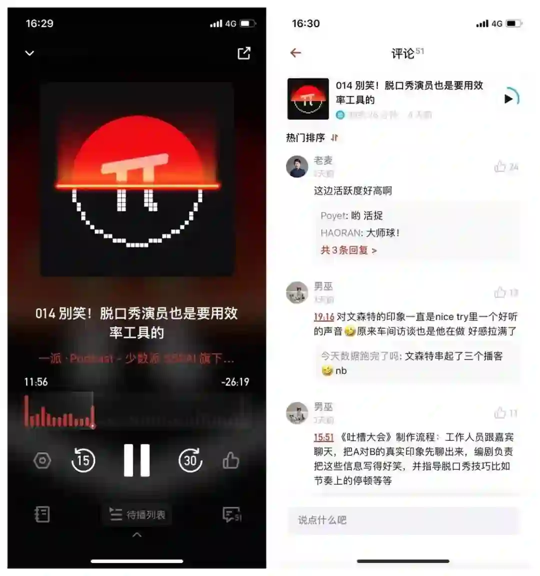 此外,小宇宙还提供了一种新的带时间戳的评论形式,发表评论时你可以标记当下正在播放的时间点,其他用户可以通过点击时间点快速跳转收听。这样的方式,让评论更有针对性,方便用户们交流心得。 当然,小宇宙也有一些不足之处,例如它目前仅提供了倍速播放和定时器两个播放调节项,如果你用惯 Overcast 的智能加速和人声增强,可能会觉得使用小宇宙播放太过拖沓。