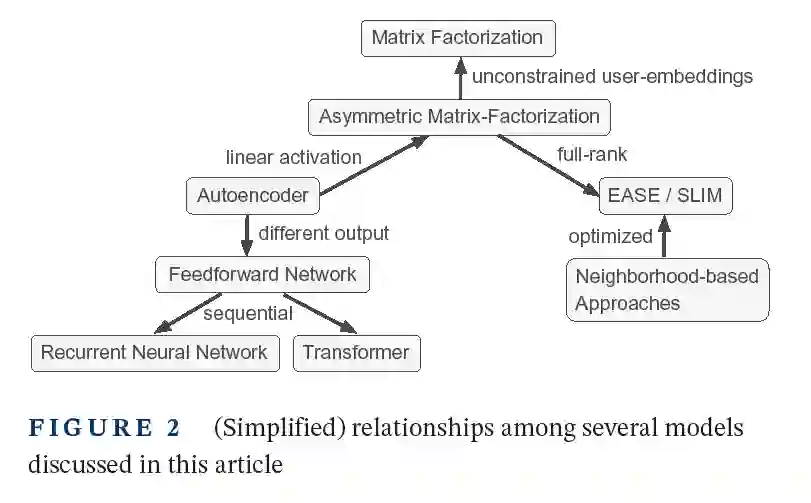 在本节中,我们将概述在试验各种深度学习模型以获得推荐时的实践情况,从简单的基线到更复杂的方法。我们将这些模型分为以下两组: 项目袋方法(Bag-of-items models)和序列化模型(Sequential models)。还讨论了两种类型的模型所共有的属性。在此之后,我们描述了我们的关键见解,即深度学习推荐算法擅长于结合许多异质特征。相比之下,我们发现,当只使用用户-物品交互时,经过良好调整的简单模型具有很好的性能(正如文献中经常出现的情况,参见Ferrari Dacrema, Cremonesi和Jannach(2019))。