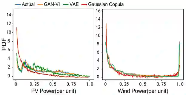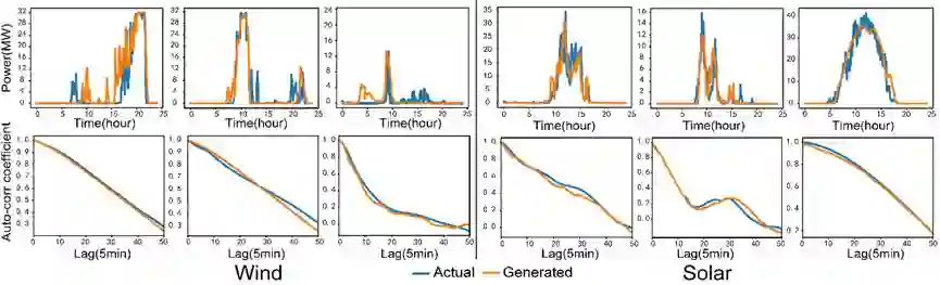 “风电和光伏的有功出力会在很大程度上受到气候条件的影响,因此,风光出力不确定性的准确描述对于促进新能源消纳具有重要意义。但是,传统方法难以对考虑时空特性的大范围风电场和光伏电站有功出力的联合分布进行准确建模,我尝试使用生成模型(generative model)对风光有功出力的多时空不确定性进行了研究。目前最常用的生成模型包括了变分自编码器(VAE)和生成式对抗网络(GAN)两大类。在真实数据样本采集成本较高且难以大量获取的研究领域,GAN可以在少量数据样本中高效学习到各类特征,进而生成得到高质量的数据集;通过GAN网络也可以通过从历史数据中拟合得到的分布对当前数据进行修复,可以进一步提升采集系统的可靠性;GAN对于随机变量不确定性准确描述的能力更是使得其在大多数工科领域都有一定的应用潜力。”