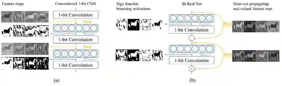 1. 通过分析我们发现,尽管输入 1-bit 卷积层的参数和激活值都是二值化的,但经过 xnor 和 bitcout 之后,网络内部会产生实数值,但是这个实数值的输出如果经过下一层 1-bit 卷积就又会被二值化,造成极大的信息丢失。