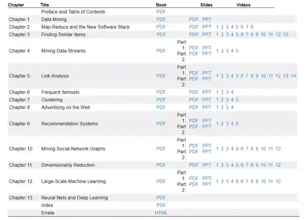 后台回复“MMDB” 就可以获取《【斯坦福大学】《海量数据集挖掘》电子书及相关资源《Mining of Massive Datasets》603页pdf》专知下载链接