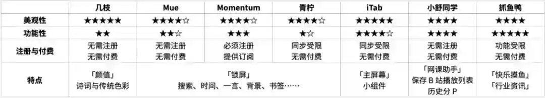 以上就是我想和你分享的七个启动页插件以及它们间的横向对比,它们有些颜值至上、没有丰富的功能、有些为了更好的功能性牺牲了简洁之美。但它们并没有绝对的「yyds」,你可能和我一样只希望标签页拥有美丽的皮囊,也可能和甜食老师一样希望标签页是纯粹实用主义导向,又或者像 JLDUAN 老师一样希望标签页回归原始的白色,我们很难找到一款「全能」的启动页,但总能找到最适合自己的。