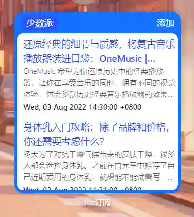抓鱼鸭的开发者笑称自己是「iTab 的拙劣模仿者」,但抓鱼鸭的小组件也有一些深得我心的功能。例如 RSS 订阅。我可以在启动页上快速浏览少数派和作者朋友们的 Newsletter,找到感兴趣的内容后愉快地开始摸鱼。除了 RSS,抓鱼鸭还提供了扫雷、速记、中午吃啥等或有趣或实用的小组件可供选择。