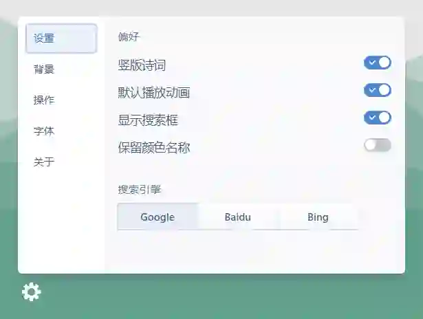 几枝是一款将中国传统色彩、中文原创字体与诗词相结合,装点你的新标签页的插件。它通过江西拙楷、欣意吉祥宋、方正细金陵三款字体展示诗词。点击诗词名即可跳转到搜索引擎查看更多诗歌相关信息。你还可以在设置中调整是否竖排显示诗词、使用的字体并查看字体背后的故事。几枝的开发者也希望可以通过几枝让更多人了解中文原创字体。
