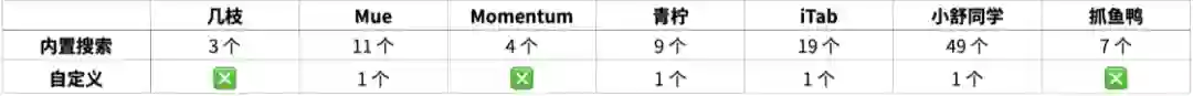 相比之下,Momentum 的搜索则稍显不足,仅提供了 4 种搜索引擎,既没有提供国内常用的百度,也没有自定义功能让用户扩展。如果你希望在标签页搜索,一键直达页面,那么 Momentum 或许需要斟酌一下。